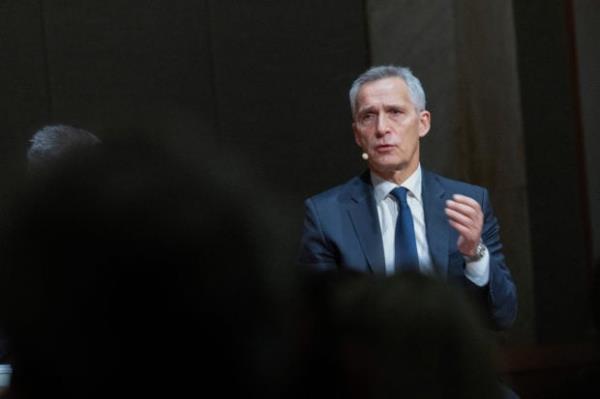 文件图片:北约秘书长延斯·斯托尔滕贝格于2022年12月8日在挪威奥斯陆奥拉大学举行的奇维塔早餐会上就俄罗斯、乌克兰和北约的安全政策挑战发表演讲。NTB/Terje Bendiksby路透社报道