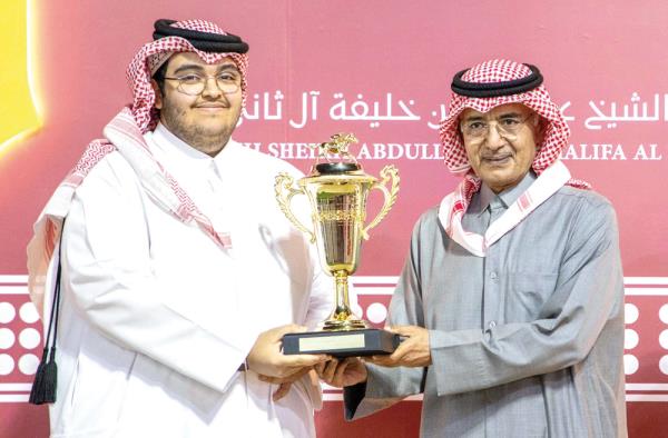 谢赫·阿卜杜拉·本·哈利法·阿勒萨尼殿下颁发谢赫·阿卜杜拉·本·哈利法·阿勒萨尼杯冠军奖杯。