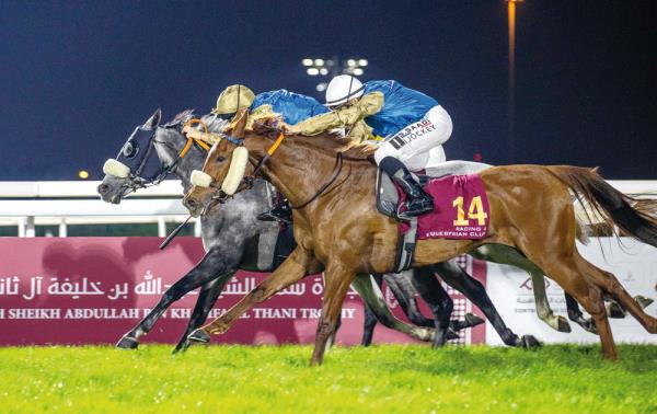 卡塔尔,多哈:昨天,在阿勒雷扬赛马场,迈克尔·巴尔萨洛纳骑着马,以一场激动人心的胜利赢得了谢赫·阿卜杜拉·本·哈利法·阿勒萨尼奖杯。
