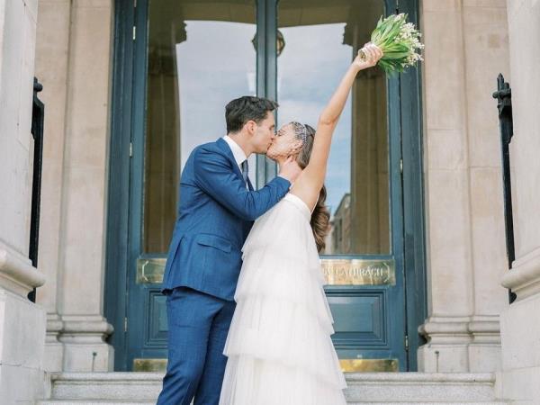 今年5月,爱尔兰橄榄球明星乔伊·卡伯里和他的另一半罗宾·弗拉纳根在都柏林市政厅正式喜结连缘,为了纪念这一时刻,他们分享了他们在标志性场所台阶上接吻的照片。
