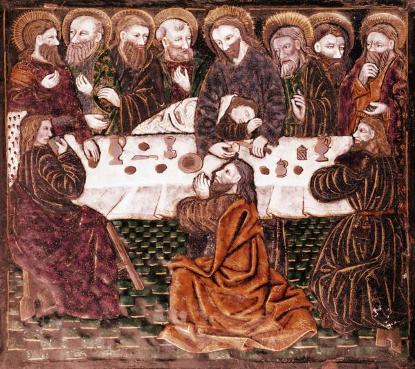 根据约翰福音,耶稣在最后的晚餐时告诉他的门徒,他们中的一个会背叛他。他们问是谁,耶稣说,我把饼蘸在盘子里,给谁,就是谁。耶稣就拿一块饼蘸在盘子里,递给加略人西门的儿子犹大。犹大吃了饼,撒但就入了他的心。(约翰福音13:21-27)。