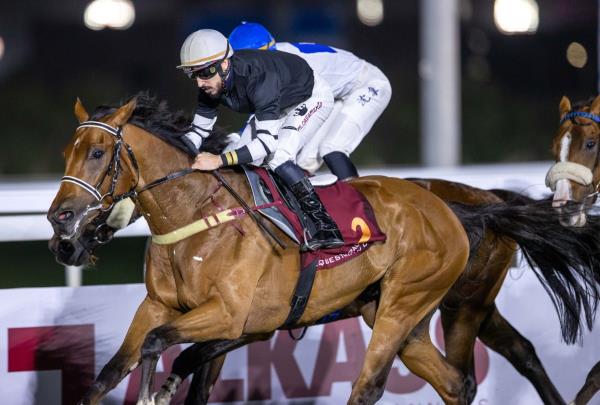 谢赫·伊曼·本·穆罕默德·本·哈利法·阿勒萨尼的法伊克·阿尔·沙哈尼在阿齐兹纯种阿拉伯障碍杯上取得了胜利。这匹五岁的马由卢卡斯·德洛齐尔(Lukas Delozier)骑着,在1400米比赛中领先,以1.5个马身的优势轻松获胜。
