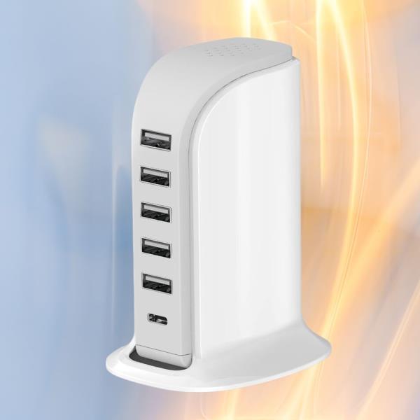 用这个方便的直立块同时为所有设备充电。这种外形可以帮助你节省桌子或床头柜上的空间,同时还可以为安卓和iphone充电。它可以同时为六台设备充电,并有多种保护措施以确保安全。它有多种颜色可供选择。