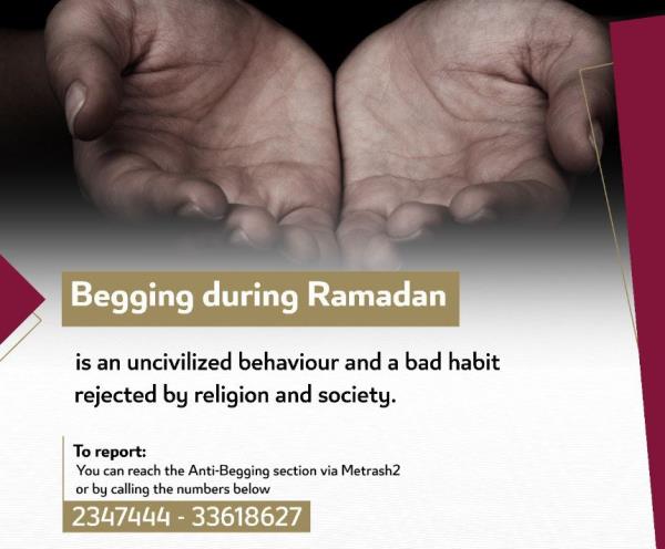 卡塔尔,多哈:内政部(MoI)再次呼吁报告全国乞讨事件,特别是在斋月期间。