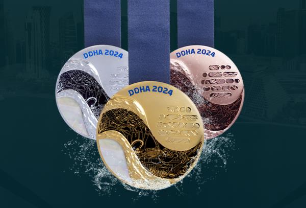 多哈,卡塔尔:2024年多哈世界游泳锦标赛的组织者透露了将在世界游泳旗舰比赛中颁发的令人惊叹的奖牌,这是该比赛首次在中东举行。