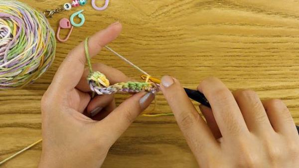 1 创建基础行。除非有一个回循环,否则无法完成回循环。链子和钩针至少在你的第一排工作。如果您正在使用模式,请密切注意何时使用 这时,您需要开始进入回循环。您可能需要从特定的行开始,或者您可能需要从该行的更深处开始。例如,图案可能表示类似于“第3行:单钩针进入回圈”或“第5行:*SC, SC进入回圈,从*重复到行尾。”