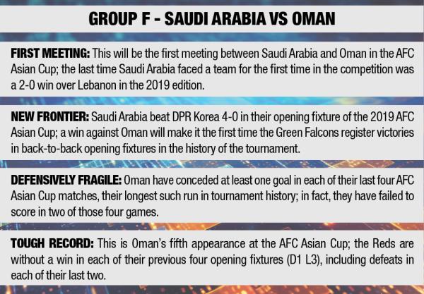 卡塔尔,多哈:今天,一支强大的沙特阿拉伯队将开始亚洲杯之旅,他们将在F组首场比赛中对阵邻国阿曼,希望结束他们在亚洲杯上的奖杯荒。