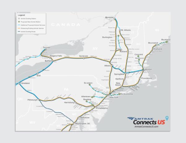 宾夕法尼亚州刚刚批准了一项升级轨道的计划,以便在匹兹堡和纽约之间增加一条经哈里斯堡和费城的每日往返线路。斯克兰顿和纽约之间的新服务也在开发中。