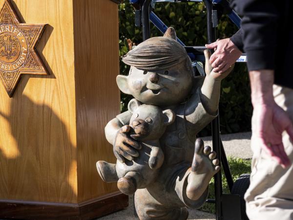 去年夏天,这座漫画人物的雕像在加州蒙特雷的一个公园被偷,后来在附近的一个湖里被发现。