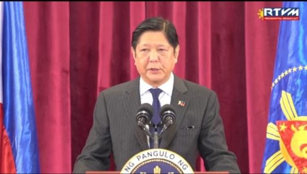 资料图片:总统费迪南德·马科斯于2023年2月12日星期日从日本抵达帕赛市的维拉莫尔空军基地后发表讲话。截图来自RTVM