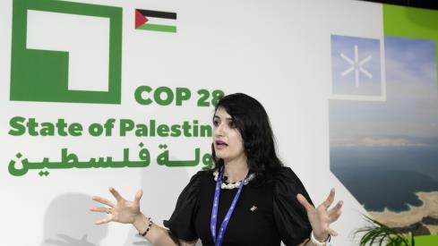 对于在场的巴勒斯坦权力机构气候变化专家哈迪尔·伊赫迈斯(Hadeel Ikhmais)来说,当她讲述冲突中巴勒斯坦人所看到的死亡人数时,这种解释听起来很空洞,无论是在加沙地带,还是在她居住的西岸。她讲述了在以色列的一次突袭中,她的家被炮火击中,她甚至很难飞到迪拜参加峰会。