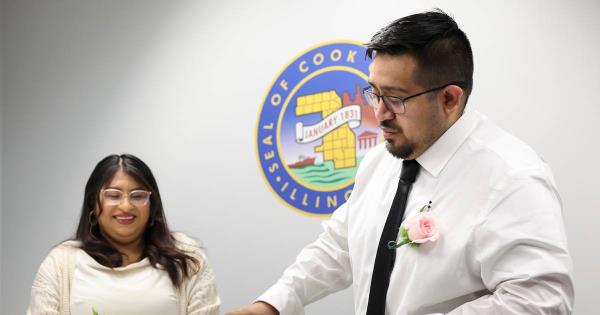 罗德里格斯在Facebook上得知这一消息后,申请了在县书记办公室举行的令人垂涎的第一次婚礼。超过200对库克县夫妇向书记办公室提交了他们的名字。获胜者于12月27日选出。