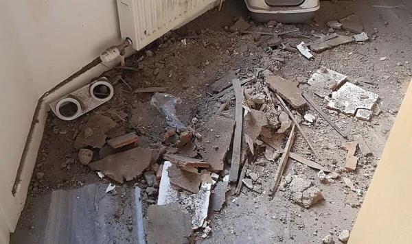 “有70公斤的碎石落在电工身上,当时电工正在给我的炊具装插座。两天前我请了一个房屋协会的维修人员,我说屋顶开裂了,他告诉我没事。