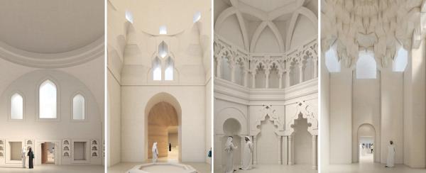 Pendentives, cross拱形,muqarnas和squinques是选定的圆顶类型的定义几何形状。它们被用来打破传统画廊的顺序,提供特殊的策展和教育机会,同时提供意想不到的空间体验。穹顶被选为这四个房间的建筑类型,每个房间都是通用的,同时也有特定的;普遍是因为圆顶在不同的文化中出现过,而具体是因为圆顶的单一“理想”形式在当地地理和文化的影响下发展了变化。