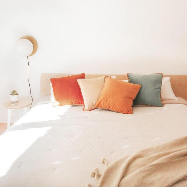 这些漂亮,柔软,做工精良。我选择了橙色和青色的组合。完美!没有松散的绳子,这在订购纺织品时本身就很少见。我想再买一些。甜美的!…它们在另一边是不同的颜色,这增加了更有趣的对比。我强烈推荐这些。他们可以在非正式或更正式的环境中工作。颜色也很独特。如果你想要一个柔软的枕头,我建议你买同样大小的枕头垫,如果你想要一个更结实、更蓬松的枕头,我建议你把枕头垫的大小调大一点。”——A.杰里,亚马逊32.50美元
