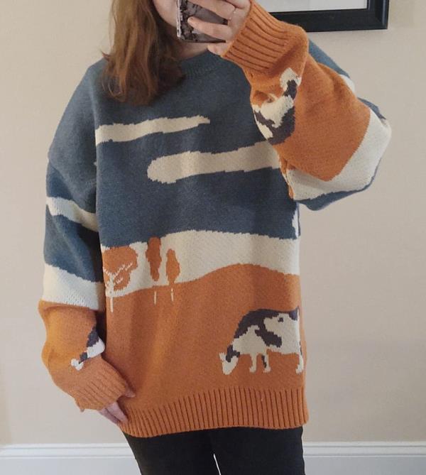 一件草地针织套头衫,当他们看到它时,每个人都会啧啧惊叹!一位评论者说:“Moo-ve over毛衫竞赛!”我觉得有义务与世界分享这一点。