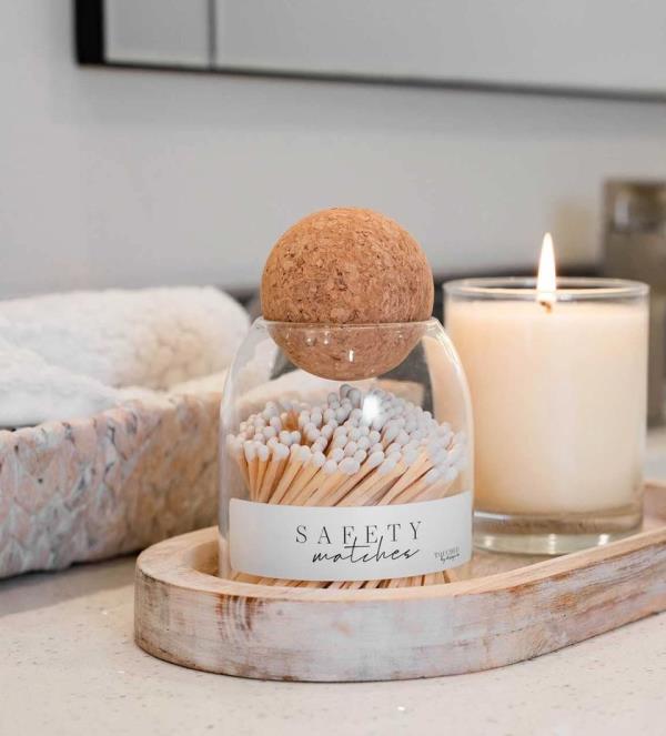 大约是一支普通蜡烛的大小),但它仍然很漂亮!瓶子是玻璃的,里面装满了白色的火柴头。”——SINGHSingh,亚马逊售价21.49美元