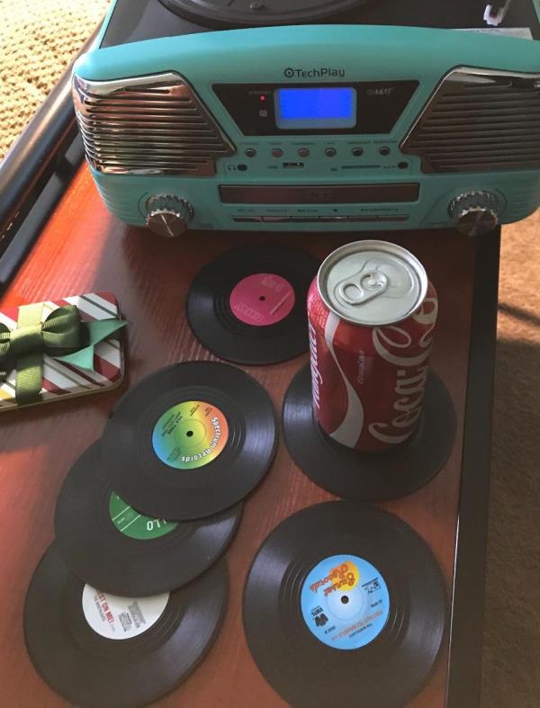 一套双关和耐用的黑胶杯垫,是任何音乐爱好者的家庭必备