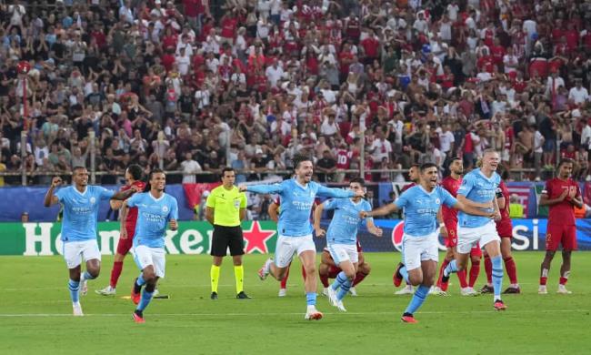 厄林·哈兰德、朱利安·álvarez、马特奥·科瓦西奇、杰克·格里利什和凯尔·沃克在点球大战中扳回一球,科尔·帕尔默在第63分钟的头球破门将塞维利亚扳平,塞维利亚的领先优势是由尤瑟夫·恩-内塞里取得的。