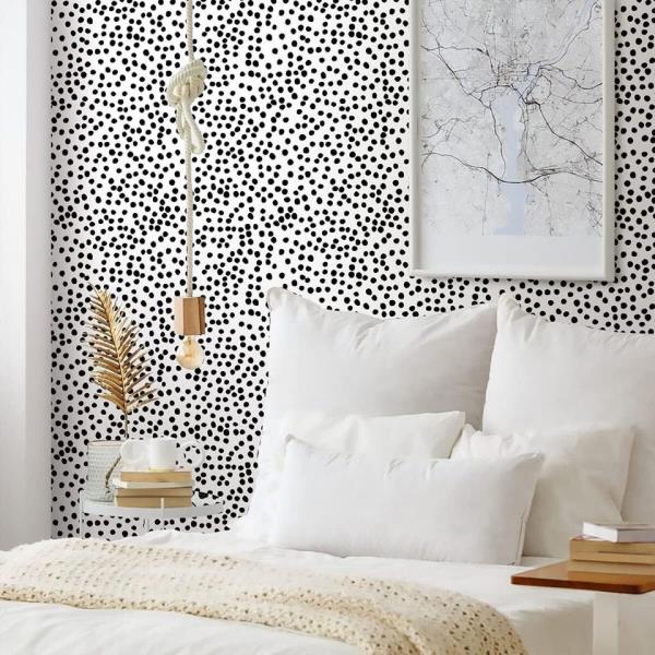 我发现一个博客使用了这种有机形状的圆点黑白纸。我现在把它贴在我的冰箱上,我喜欢它给我的厨房带来的乐趣。由于这些点的形状略有不同,布局也很零散,我觉得它比传统的更让人放松