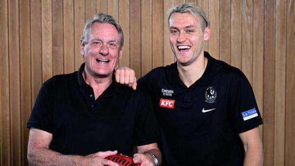 如果科林伍德赢得周六的澳式足球联赛决赛,两届布朗罗奖牌得主彼得·摩尔将向他的儿子达西颁发英超奖杯。