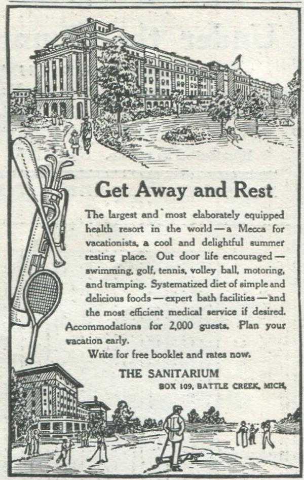 在凯洛格博士和他的兄弟威尔的监督下,巴特克里克疗养院从教堂的小型“健康改革机构”发展成为一个全国性的整体健康目的地——集医疗中心、水疗中心和豪华酒店于一体。凯洛格博士还讲学、写书、编辑杂志,成为一位名人医生,他的仰慕者和病人包括几位美国总统,托马斯·爱迪生、亨利·福特、阿米莉亚·埃尔哈特、索杰纳·特鲁斯和许多其他人。艾达·塔贝尔(Ida Tarbell)也是他的病人之一,她是当时最重要的调查记者,她不太可能让骗子逍遥法外,更不用说亲自接受骗子的治疗了。