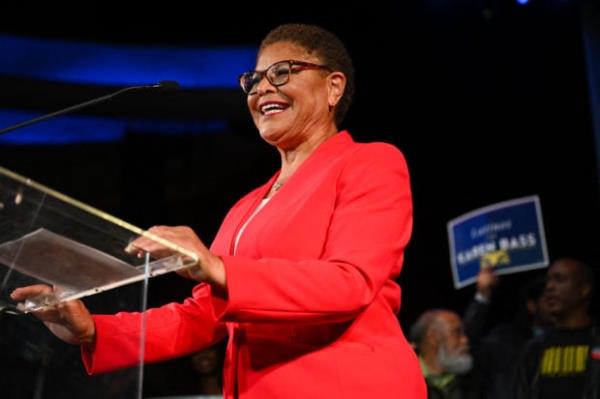 洛杉矶——周三的投票预测显示,洛杉矶居民选举凯伦·巴斯为市长,使她成为美国第二大城市的首位女性市长。