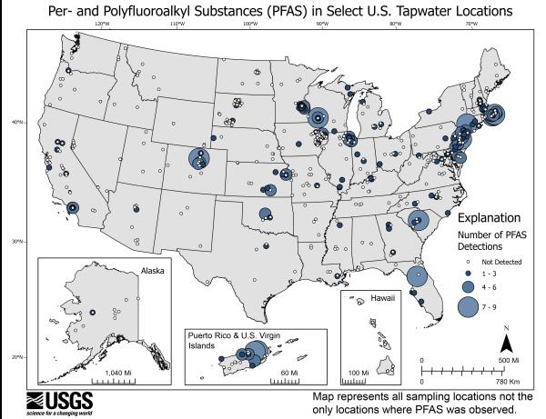 美国地质调查局说,这些被统称为PFAS的合成化合物在不同程度上污染了大城市和小城镇的饮用水,也污染了私人水井和公共系统。