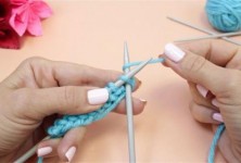 1 左手握住所有缝线的针。为了编织第二行,你不需要反向运动。简单地把所有的针都转到你的非惯用手。现在,您可以开始以与第一行完全相同的方式编织第二行了。