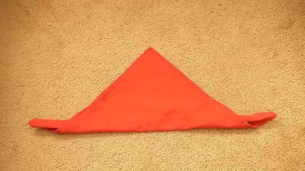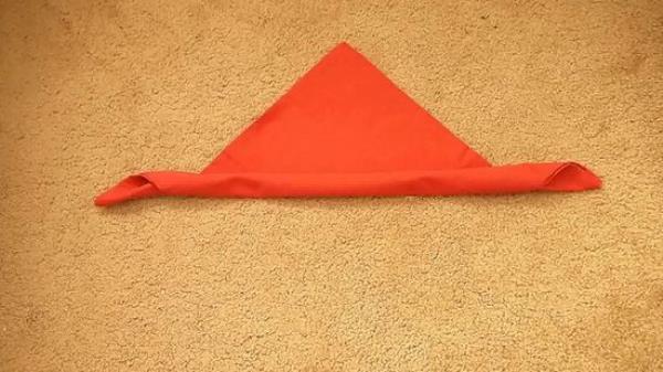 2 对角对折餐巾。最终的结果将看起来像一个三角形。