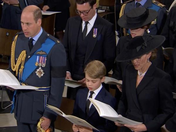 - 威廉王子和凯特·米德尔顿回到威斯敏斯特教堂参加女王的葬礼。