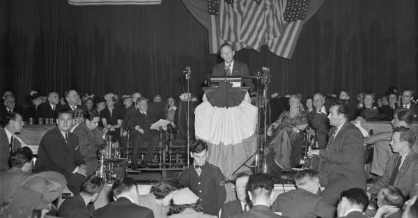 “把这个国家推向战争的三个最重要的团体,”他说,“是英国人、犹太人和罗斯福政府。”虽然林德伯格对面临纳粹迫害的犹太人表示同情,但他直接使用了上周使用的同样的比喻,声称犹太人“对这个国家最大的危险在于他们在我们的电影、媒体、广播和政府中拥有大量的所有权和影响力”。