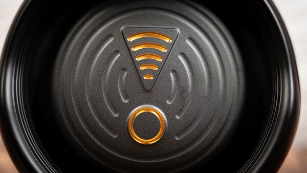Boombox Wi-Fi的特点是一个平坦的底座,有12个椭圆形的斜橡胶脚,确保稳定性,防止不必要的滑倒或滑落。
