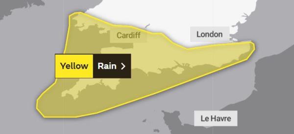 英国气象局再次发布黄色天气预警,称南部地区将有大雨。