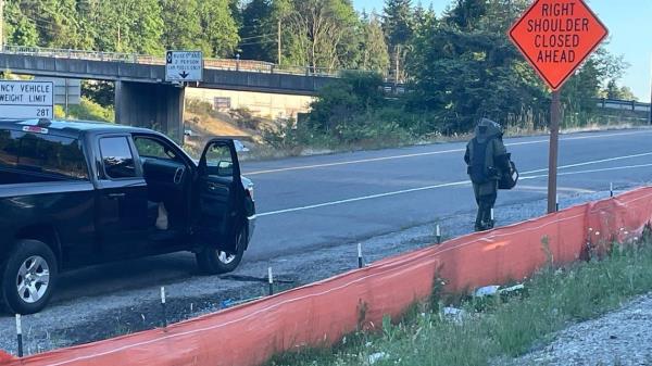 一名司机在他的卡车里发现了一个装有保险丝的网球,华盛顿的防爆小组对此做出了反应。