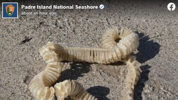 “冲进来的这个奇怪的东西是什么?”帕德雷岛国家海岸管理局7月20日在脸书上问道。“是蛇皮吗?”一块塑料?”