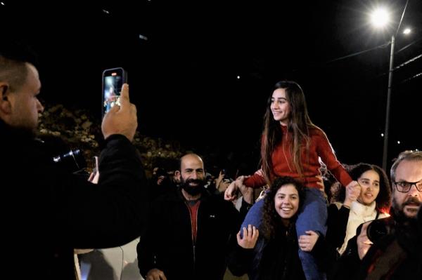 在一座可以俯瞰奥弗监狱的小山上,数十人等待数小时观看释放,一些人在篝火旁取暖。其他人则驾驶着汽车和摩托车在附近的住宅区巡游。