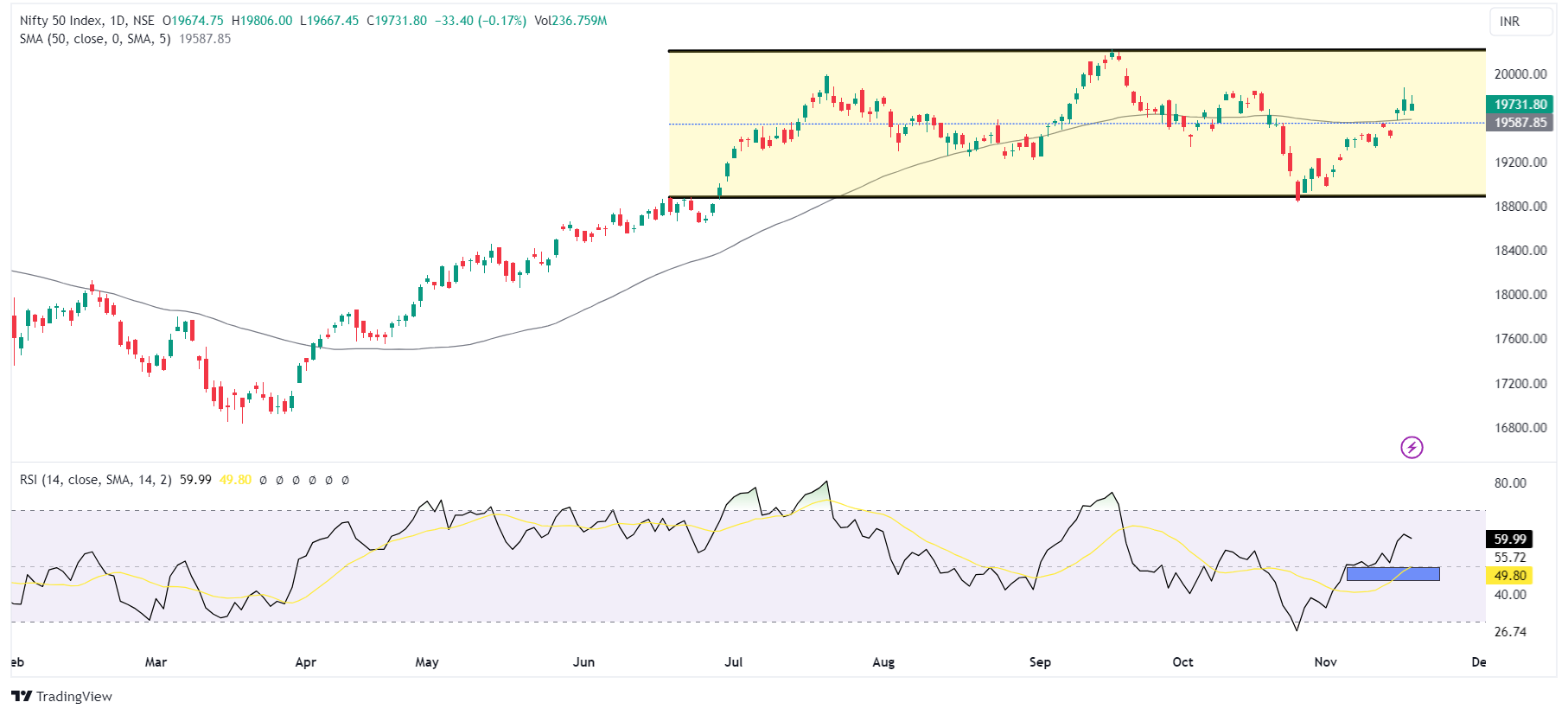 该指数在19,850点附近有多个阻力位,进一步上涨的可能性将取决于看涨未平仓合约最高履约19,800点的期权活动。