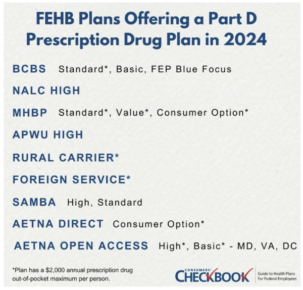 对养老金领取者来说,这个公开季最大的新闻是D部分的报道。以下17个FEHB计划将于明年向养老金领取者提供D部分处方药计划: