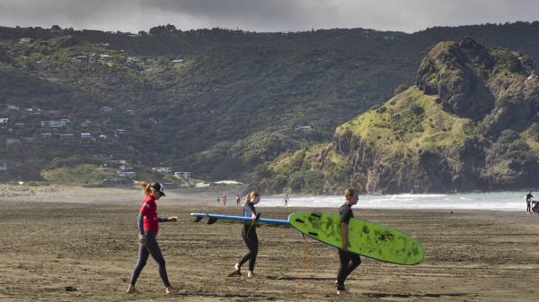 西海岸有救生员巡逻的海滩有穆里瓦伊、贝瑟尔斯、皮哈、北皮哈、Karekare和Kariaotahi。