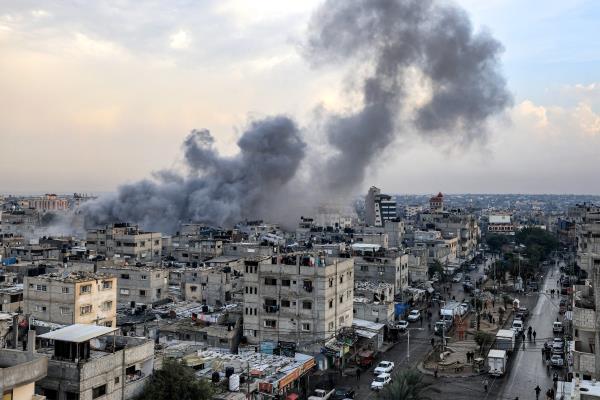 [多哈时间上午9:50]图片:2023年12月12日,以色列轰炸加沙地带南部拉法时,浓烟滚滚。图片由MAHMUD HAMS /法新社提供