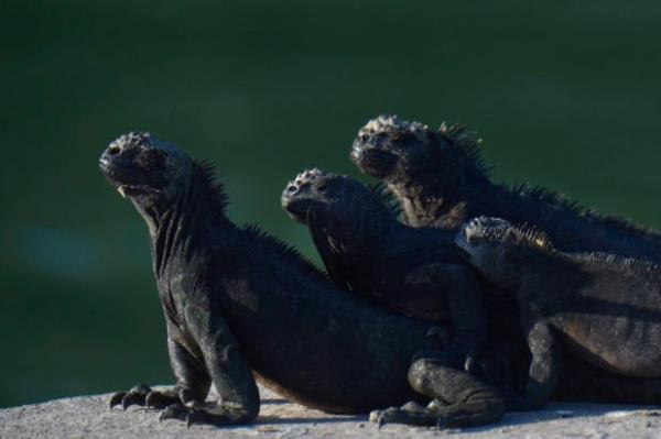 4月14日,海鬣蜥在距离厄瓜多尔海岸约900公里的太平洋加拉帕戈斯群岛圣克鲁斯岛阿约拉港的加拉帕戈斯国家公园晒太阳。法新社档案照片