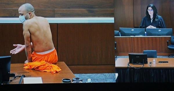 周四是作证的第一天。在陪审团被带进法庭之前,布鲁克斯至少打断了多罗十几次。法官让法警把布鲁克斯带到另一个法庭。一到那里,他就脱下囚服衬衫,坐在辩护桌上,背对着镜头。可以看到他打着手势,用手指戳着桌子。
