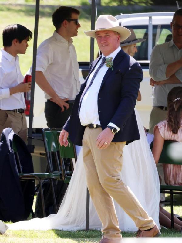 前国家党领袖巴纳比·乔伊斯和前职员维姬·坎皮恩首次被拍到参加他们的“丛林派对”婚礼。
