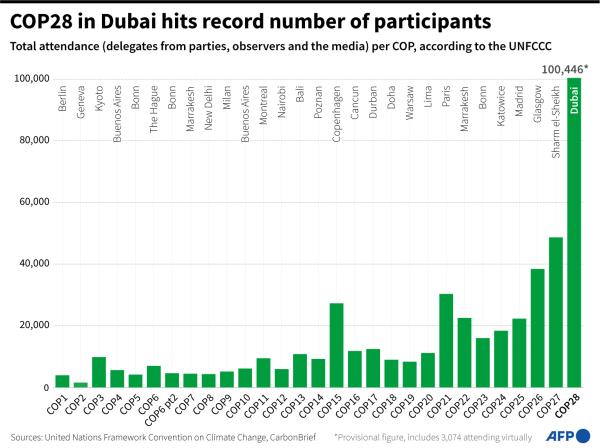 在迪拜举行的第28届联合国气候变化大会(COP28)参会人数创历史新高